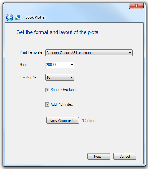 Grid Alignment - Press the Grid Alignment button to display the Grid Alignment dialog to allow you to specify how the Book Plotter grid is to be aligned: