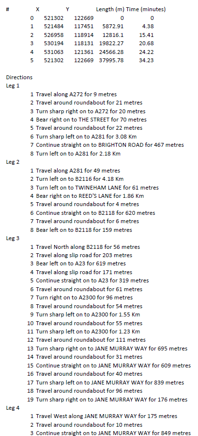 Output route to CSV