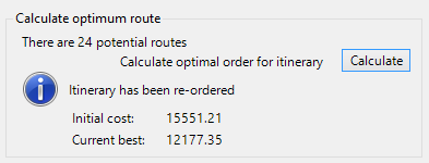 Click the Calculate button to calculate the optimal route for the itinerary: