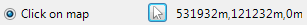 Click the cursor/arrow button and then click on the map. The position will be shown next to the cursor button, i.e.: