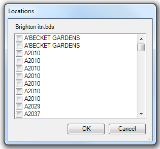 If the Select locations from option in the Itinerary dialog was selected: