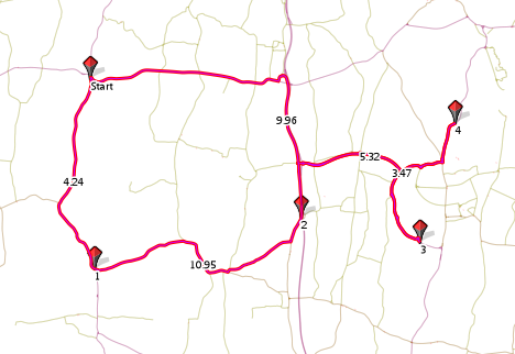 The above shows the same route with Close route back to starting point tickbox checked
