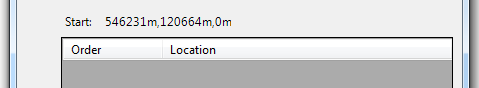 If Use selected item, Enter co-ordinate or Click on map was selected as a Start position in the Itinerary dialog then Start: followed by the entered co-ordinate will be shown, i.e.: