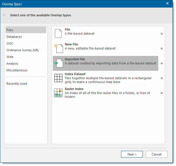 Some data products (GIS, Digital Mapping and Remote Sensing software) provide data files that are geo-referenced. These can be included as overlays in the normal way using Home > Map > Overlay.