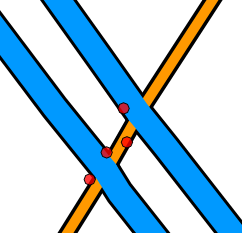 The picture above shows AVLS data points (red circles) where a B road crosses a motorway.