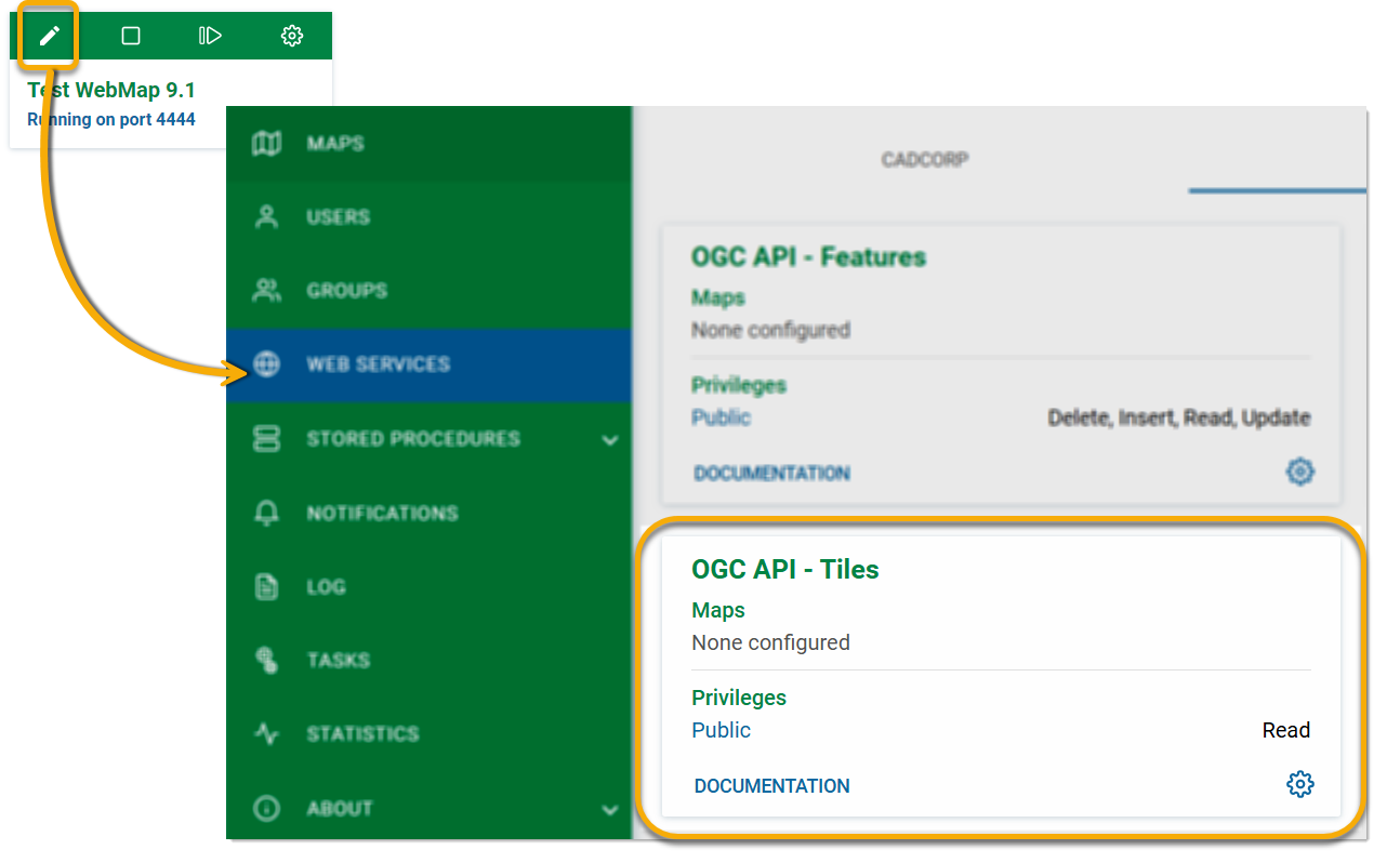 Click Edit on an instance and select Web Services > OGC > OGC API- Tiles.