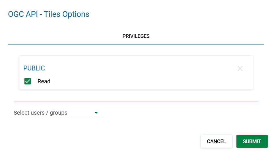 > Privileges. Because Tiles are image-based, you can only read the content. Select desired users/groups from the drop-down menu.