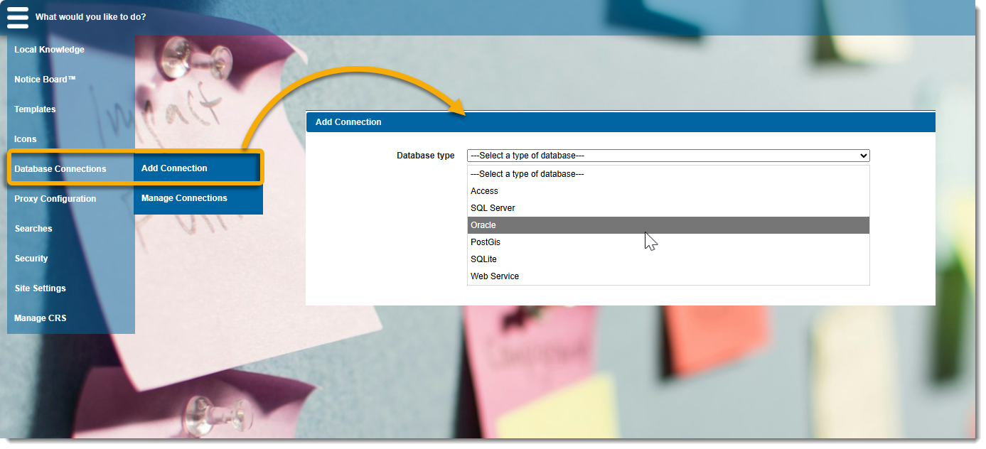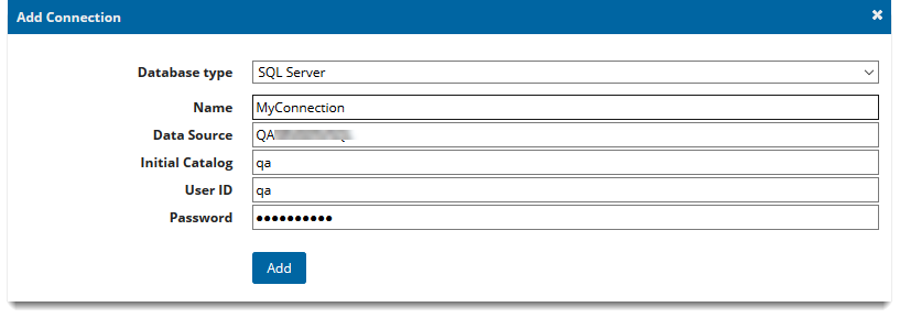 Database connections are used for Quick Search and the ReportIT services. Use Add Connection to add them to NoticeBoardConfig.db
