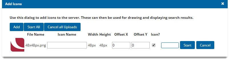 - Icon Name should be descriptive; it is not used to link to the symbols used by GeognoSIS. Only the image filename is capable of this.