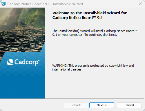 - Check your system’s Downloads folder for an installation file with this name: Cadcorp SIS Notice Board 9.1.xxxx.64.exe or Cadcorp SIS Notice Board 9.1.xxxx.32.exe