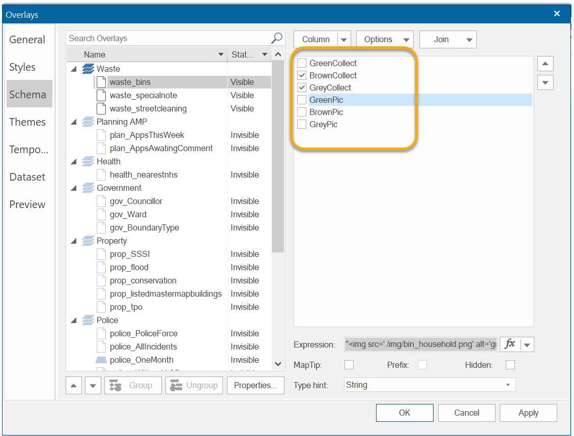 For more detail within the results, choose Map Tip inside Schema. This displays the schema attributes you have chosen.