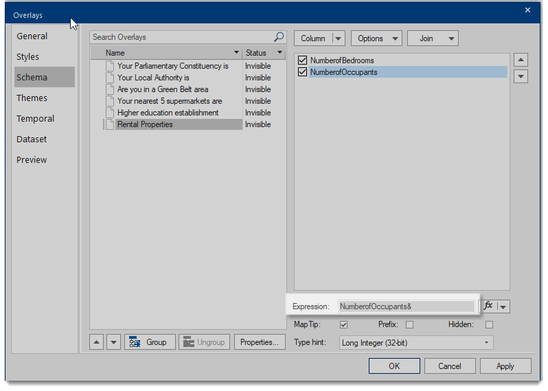 In your Local Knowledge SWD, right click on the overlay you wish to add the property to and select Properties: