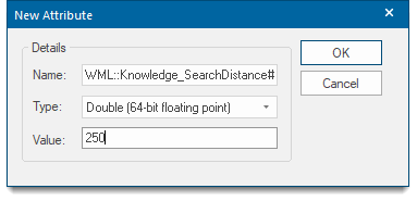 In the New Attribute dialog, type WML::Knowledge_SearchDistance# into the Name field.