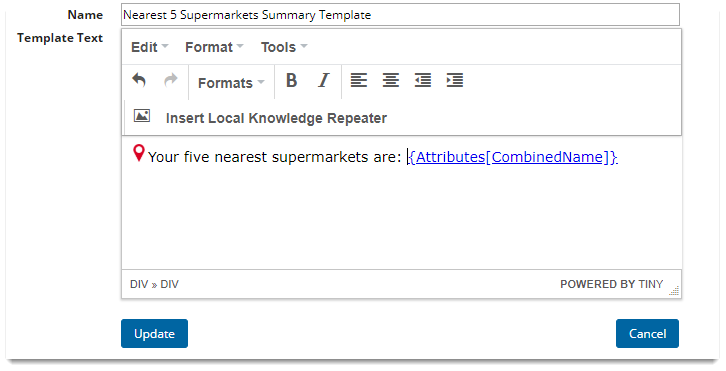 - From the Manage Templates dialog scroll to find Nearest 5 Supermarkets.