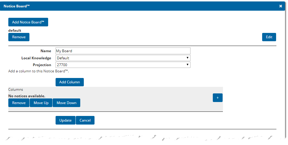 - The Projection of the Notice Board must match that of the Local Knowledge SWD. In the UK it is likely to be 27700.