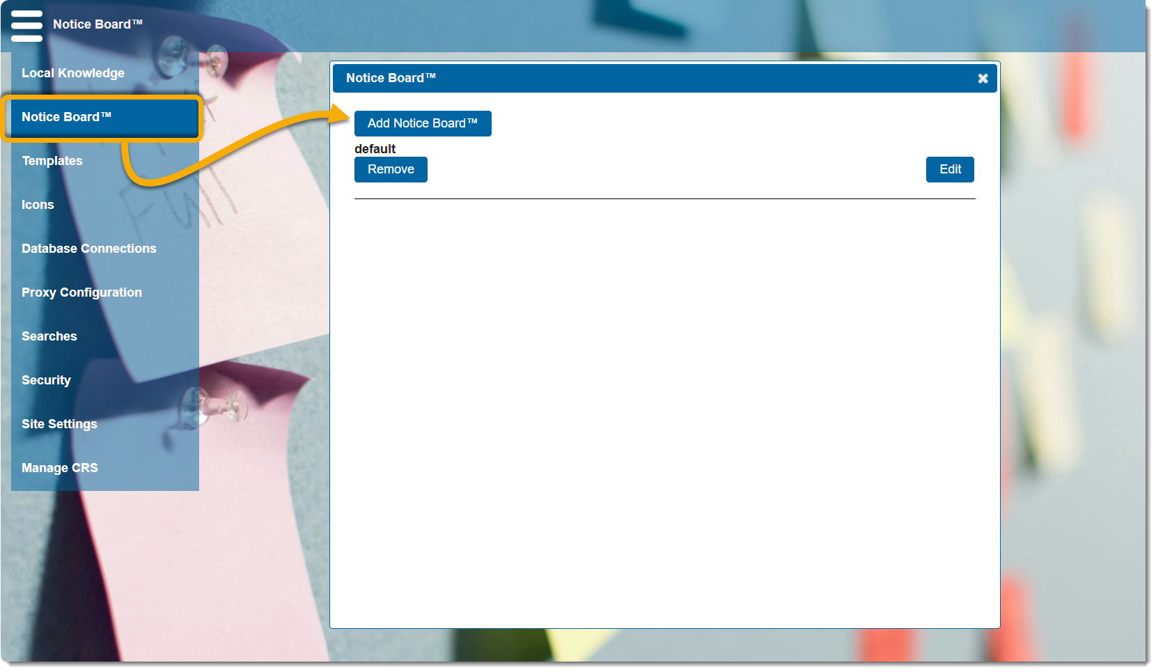 To remove a Notice Board click the Remove button located below the Notice Board Name. Click Yes to confirm your choice.