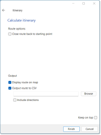 - Keep on top: Tick this checkbox to keep the Itinerary dialog pinned on top of all other windows.