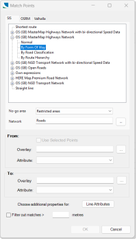 The Line Attributes button allows the selection of attributes from the matched points to be applied to the route line.