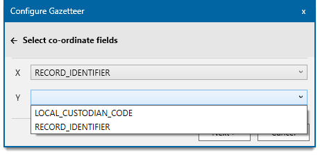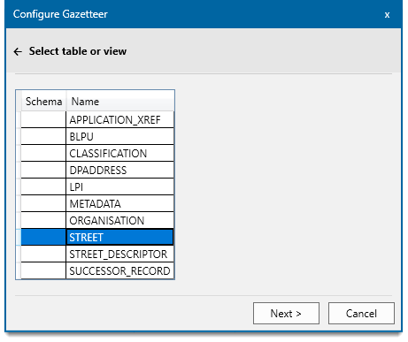 Select the table or view that contains the gazetteer data. Click Next.