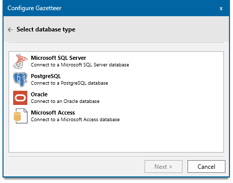 If Microsoft Access is chosen, ensure the database table selected from the Gazetteer Designer dialog DOES NOT have any spaces in its name.