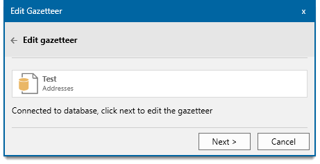The selected gazetteer will be checked for database connections. Click Next.