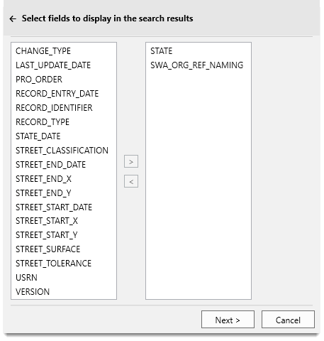Click Next to select the fields to be displayed in the search results. Use the  or