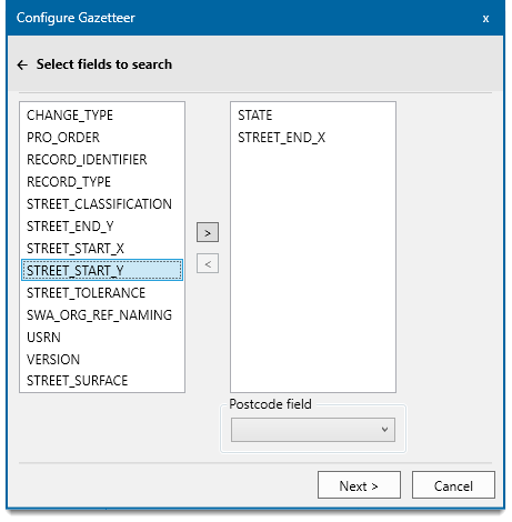 Click Next to begin selecting the fields you wish to search. Use the  or