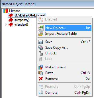 - In the Libraries Control Bar select the library which will contain the feature table.