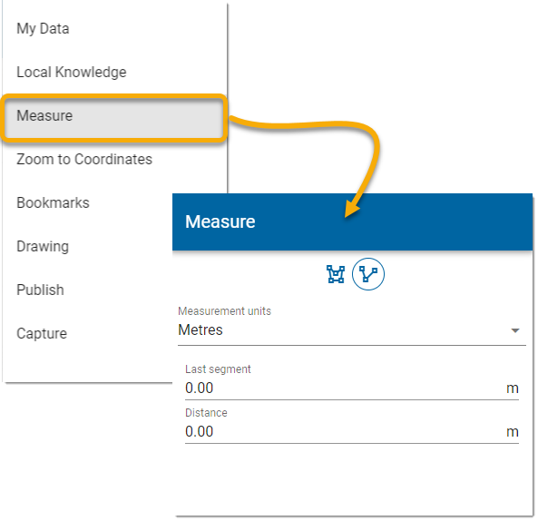 Measure Line: Use this option to measure distance between two points on the map. Click on the map to define the starting point and double click for the finishing point.